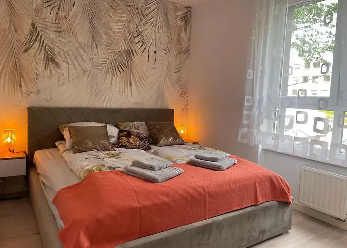 Goście zatrzymujący się w Apartament - jak w domu - 130m2 z Tarasem i ogródkiem mogą korzystać z udogodnień do samodzielnego przygotowywania posiłków, takich jak wyposażony aneks kuchenny oraz jadalnia i jadalnia na świeżym powietrzu. W malej odległości do przystanku autobusowego Skarbowcow. Dzięki luksusowym udogodnieniom, w tym tarasowi i placu zabaw, goście mogą odpocząć i zrelaksować się.